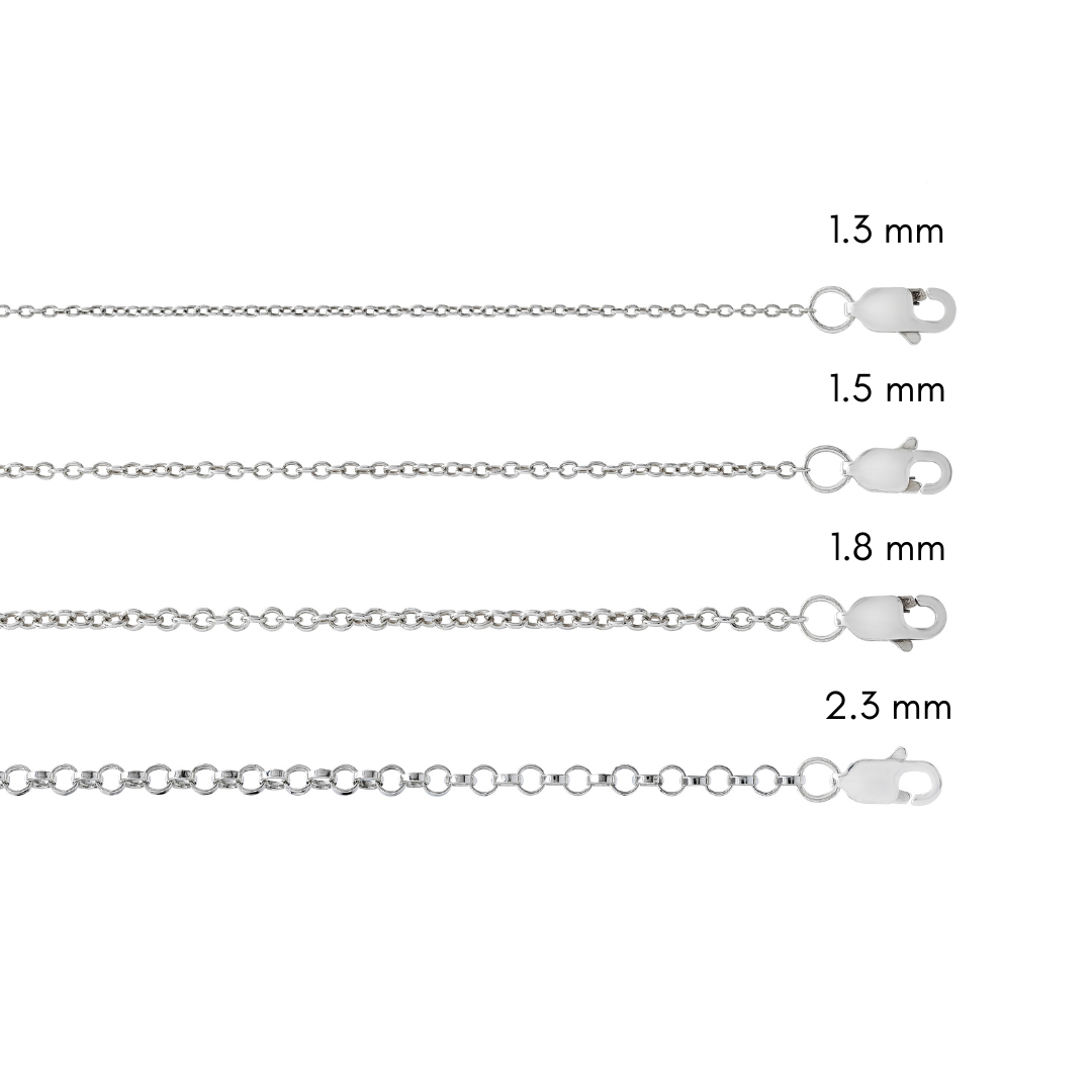 Choose from four link widths — 1.3mm, 1.5mm, 1.8mm, and 2.3mm — to achieve your ideal level of delicacy or visual presence. Length options from 16" to 30" allow you to customize your fit, from a shorter everyday look to a long, layered style.
