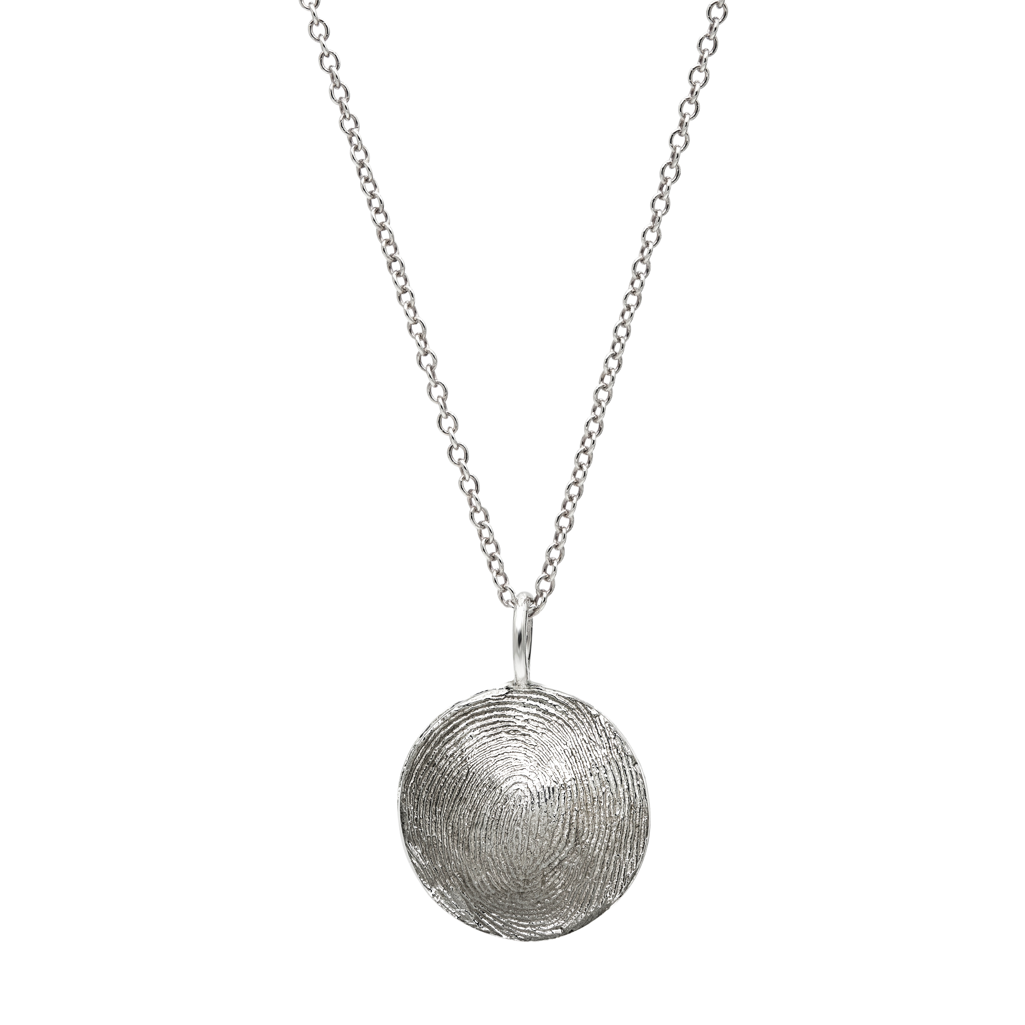 Designed for everyday wear or special occasions, this fingerprint jewelry piece can be fully personalized. Create your own fingerprint necklace by pairing this pendant with one of our beautiful chains. Choose your preferred metal, pendant size, and chain style to reflect your individual taste. Add engraving for a distinctive personalized memorial gift that carries the spirit of someone you love.